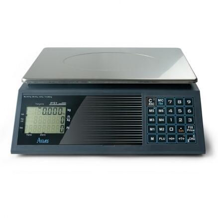 A PS1 típusú árszorzós mérlegek kialakításánál a hordozhatóság volt a legfontosabb szempont. Ezek a könnyű és kisméretű Aclas modellek közel két évig üzemeltethetőek három góliát elemmel, akár napi nyolc órás használat mellett is. Akkor sincs baj, ha az elemek esetleg lemerülnek, mivel a készülék bármikor csatlakoztatható az elektromos hálózathoz saját adaptere révén. Az értékesítési adatokat egy jól látható, három soros LCD kijelzőn jelenítik meg, amely a termékek súlyának, egységárának és a végösszegnek bemutatására egyaránt képes. A kényelmesen kezelhető szilikon billentyűzettel felszerelt készülékek alkalmasak a beütött tételek elmentésére, ezért egyszerre több vásárló is kiszolgálható a segítségükkel. Élettartamukat jelentősen növeli, hogy egyedi kialakításuknak köszönhetően a rovarok és más kártevők nem tudnak hozzáférni a készülékházukban található érzékeny alkatrészeikhez. A fix áras értékesítést és az előre rögzített árucikk adatok előhívását lehetővé tevő billentyűkkel felszerelt PS1B modellt 30 kg-os méréshatárral rendelheti meg tőlünk rozsdamentes acél tálcával. A készüléket piaci használatra, élelmiszerboltokba vagy vegyeskereskedésekbe egyaránt ajánljuk. - Méréshatár/pontosság: 6kg / 2g, 15kg / 5g- Kijelző: Vevő és kezelő oldali LCD, háttérvilágítással- Tálca méret: 330*230- Minimális mérhető mennyiség: 40 g- Maximum tára érték: -5.998 kg- Energia ellátás: Adapter 3 db "D" típusú góliát elem (alaptartozékok)- Elem várható élettartama: akár két év, napi nyolc órás használat mellett,   óránként 30 méréssel számolva, ahol egy mérés 10 másodpercig tart- Méretek: 340x342x110 mm- Súly: 2 kg  ;