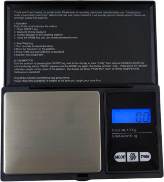 Digitális mikromérleg CX-258 ideális társ az pontos mérésekhez utazás közben vagy otthon. Akár 1000g kapacitással és 0,1g felbontással tökéletes választás arany, gyógynövények vagy más apró tárgyak méréséhez. A kék háttérvilágítású kijelzővel és 7,6 cm x 6,4 cm-es mérőfelülettel a CX-258 mikromérleg használata egyszerű és kényelmes. A TARÓ funkció lehetővé teszi a tartály vagy más tárgyak tömegének nullázását, így pontosan mérheti a anyag súlyát. A CX-258 mérleg különböző egységekben való mérés lehetőségét kínálja, mint például gramm, karát, uncia, troy uncia, pennyweight, tael vagy grain. A manuális kalibrálási funkcióval biztos lehet a pontos mérések eredményeiben. Az energia maximális megtakarítása érdekében a mikromérleget automatikus kikapcsolási funkcióval látják el inaktivitás esetén. Működtetéshez mindössze 2x 1,5V AAA elem szükséges, amelyek a csomag részét képezik. Jellemzők:Zsebméretű digitális mikromérleg1000g-ig terjedő kapacitás 0,1g felbontássalKék háttérvilágítású kijelzőMérőfelület mérete: 7,6 cm x 6,4 cmTARÓ funkcióMérés egységekben: g / kt / oz / ozt / dwt / tl / gnManuális kalibrálási lehetőség (kalibráló súly nem tartozék)Automatikus kikapcsolási funkció inaktivitás eseténTápellátás: 2x 1,5V AAA elem (a csomag része)Használati példák:A CX-258 mérleg ideális arany és ezüst méréséhez, gyógynövényes készítmények elkészítéséhez vagy apró ékszerek méréséhez. Ideális utazáshoz is, amikor könnyedén ellenőrizheti csomagja súlyát.