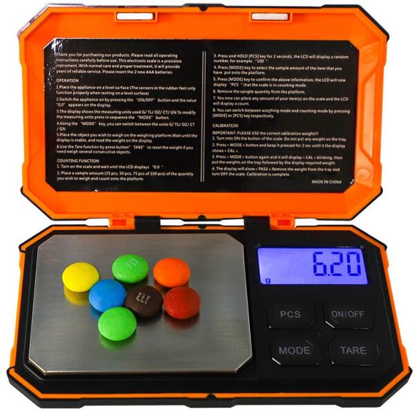 Kézi kalibrálási lehetőség (6g vagy 50g vagy 100g vagy 200g kalibráló súly szükséges), 50g-os kalibráló súly mellékelve