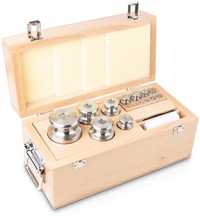 KERN súlykészlet precíziós mérlegekhez 1 g - 5 kg fa dobozban, OIML M1 súlyosztály, hitelesíthető (344-08)