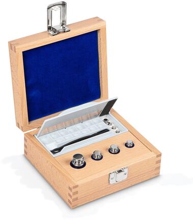 KERN OIML F1 rozsdamentes acél hitelesíthető súlykészlet precíziós mérlegekhez 1 g - 50 g, fadobozban. Analitikai és precíziós mérlegek ellenőrzéséhez, kalibrálásához. A súlyokat használat előtt érdemes statikusan földelni, például fűtéscsőhöz érinteni.  A súlyokkal - nagy pontosságuk megőrzése érdekében - csak tiszta csipesszel, vagy kesztyűben javasolt dolgozni.