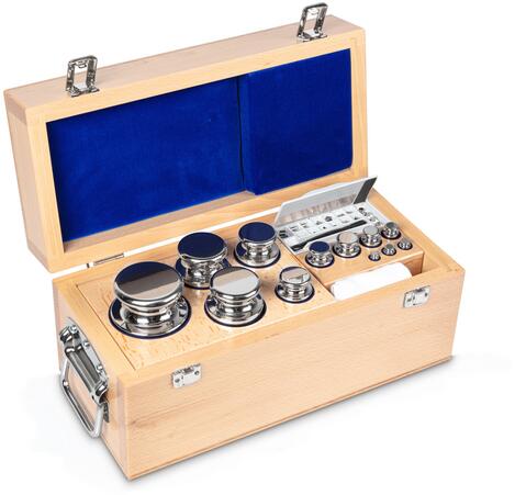 KERN súlykészlet precíziós mérlegekhez 1 mg - 5 kg fa dobozban, OIML F1 súlyosztály, hitelesíthető (323-08)