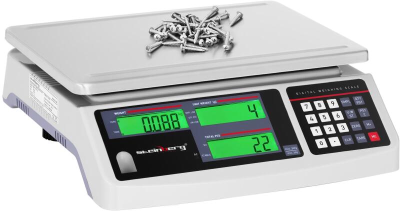 Steinberg Systems Darabszámláló mérleg - 30 kg / 1 g - 3 LCD - Akkumulátor 72 h (SBS-PW-301CC)